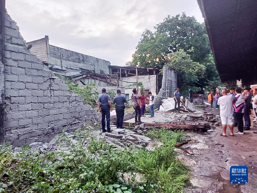 11月17日,在菲律宾桑托斯将军城,人们查看地震造成的房屋损毁情况。