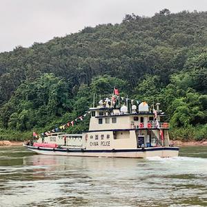 中方53102艇途经关累港水域。(云南省公安厅水上巡逻总队供图)