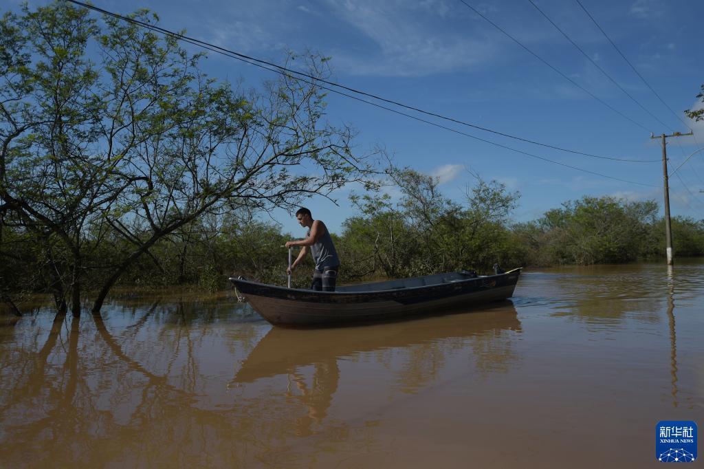 11月24日,在巴西南里奥格兰德,居民划船出行。