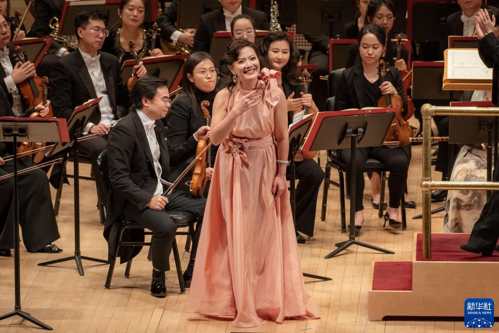 11月24日,中央音乐学院女高音歌唱家宋元明在美国纽约卡内基音乐厅进行演出。新华社发(迈克尔·维奥拉果摄)