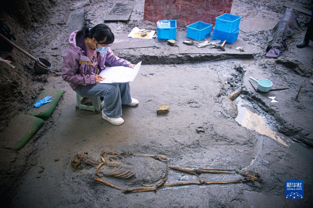 11月23日,工作人员在温州朔门古港遗址考古发掘现场工作。