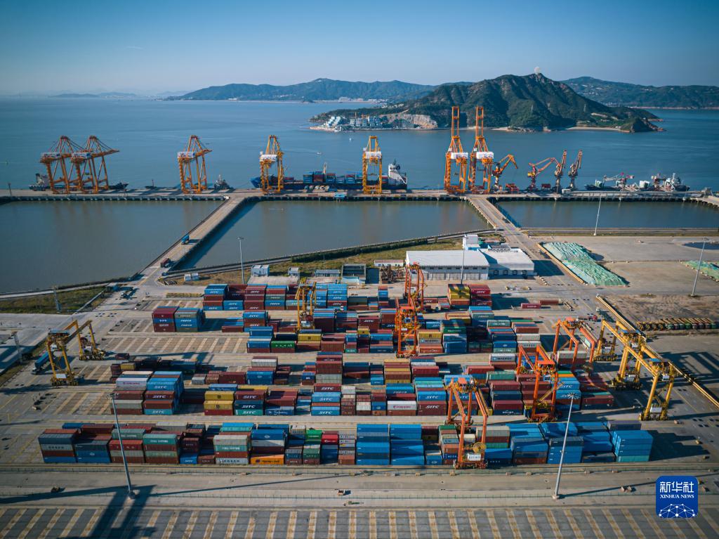 这是11月22日拍摄的温州港状元岙集装箱码头(无人机照片)。
