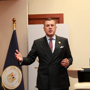 11月26日,埃及旅游和文物部长艾哈迈德·伊萨在埃及新行政首都举行的记者会上介绍本国旅游发展情况。新华社记者 隋先凯 摄