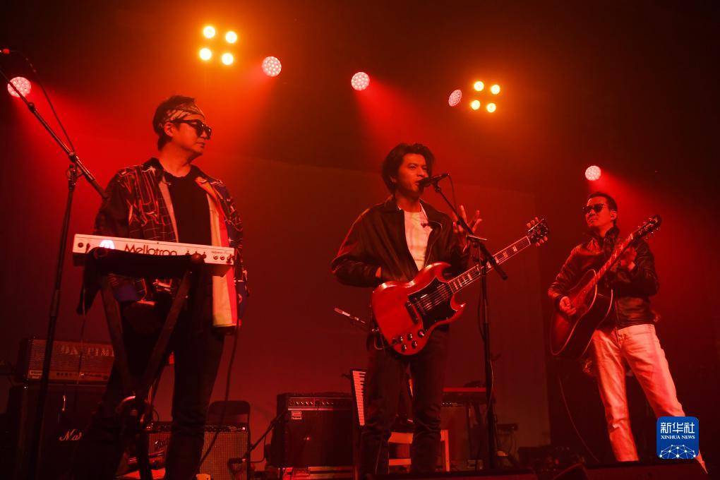 11月26日晚,痛仰乐队在美国纽约举行的“有朋自东方来”音乐节上表演。新华社记者 李睿 摄