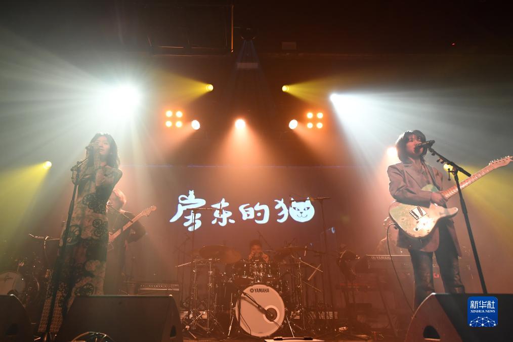11月26日晚,房东的猫乐队在美国纽约举行的“有朋自东方来”音乐节上表演。新华社记者 李睿 摄