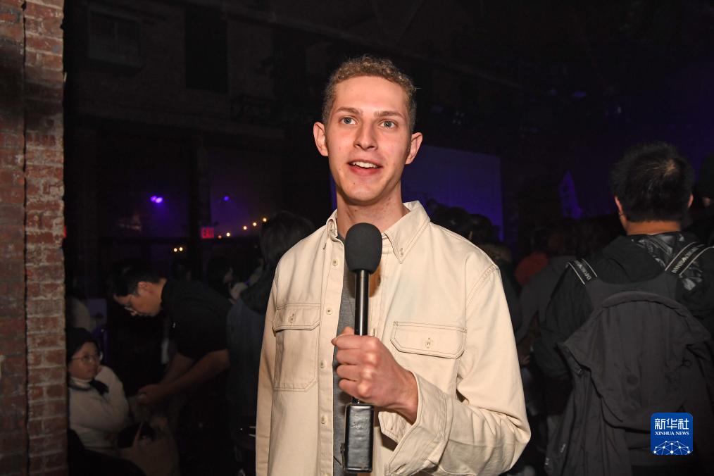 11月25日,康奈尔大学学生刘方在美国纽约举行的“有朋自东方来”音乐节上接受采访。新华社记者 李睿 摄