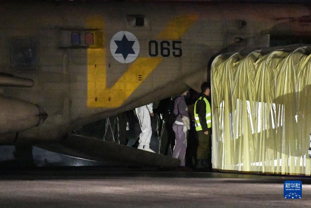 11月29日凌晨,获释的第五批被扣押人员搭乘直升机抵达以色列拉马特甘的一所医院。