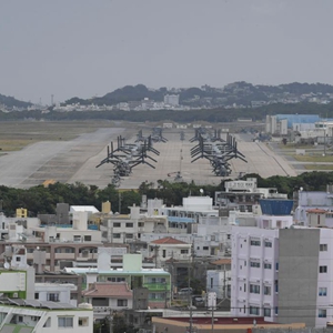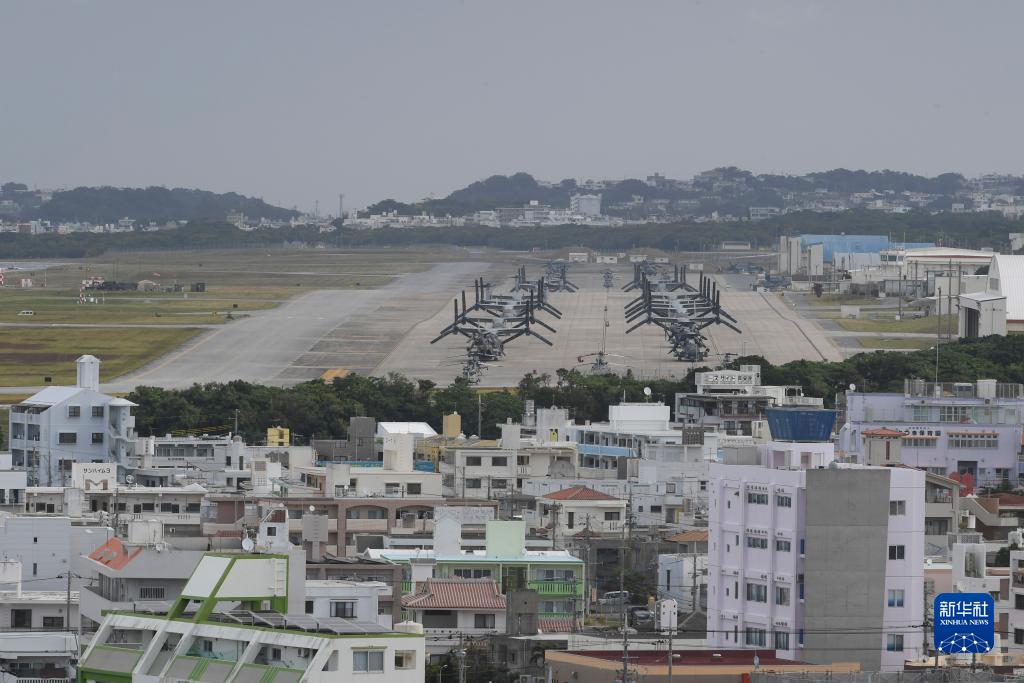 这是11月25日在日本冲绳美军普天间基地驻留的“鱼鹰”运输机(资料照片)。