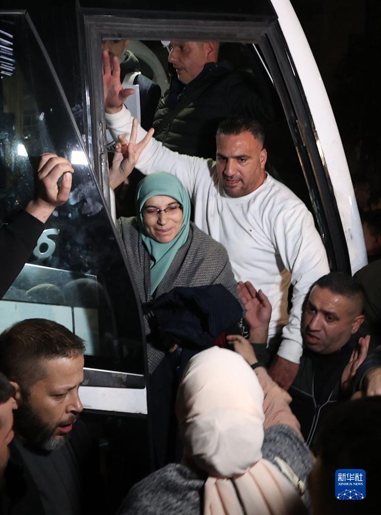 11月30日,载有获释巴勒斯坦被关押人员的大巴抵达约旦河西岸城市拉姆安拉。