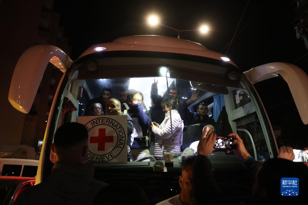 11月30日,载有获释巴勒斯坦被关押人员的大巴抵达约旦河西岸城市拉姆安拉。