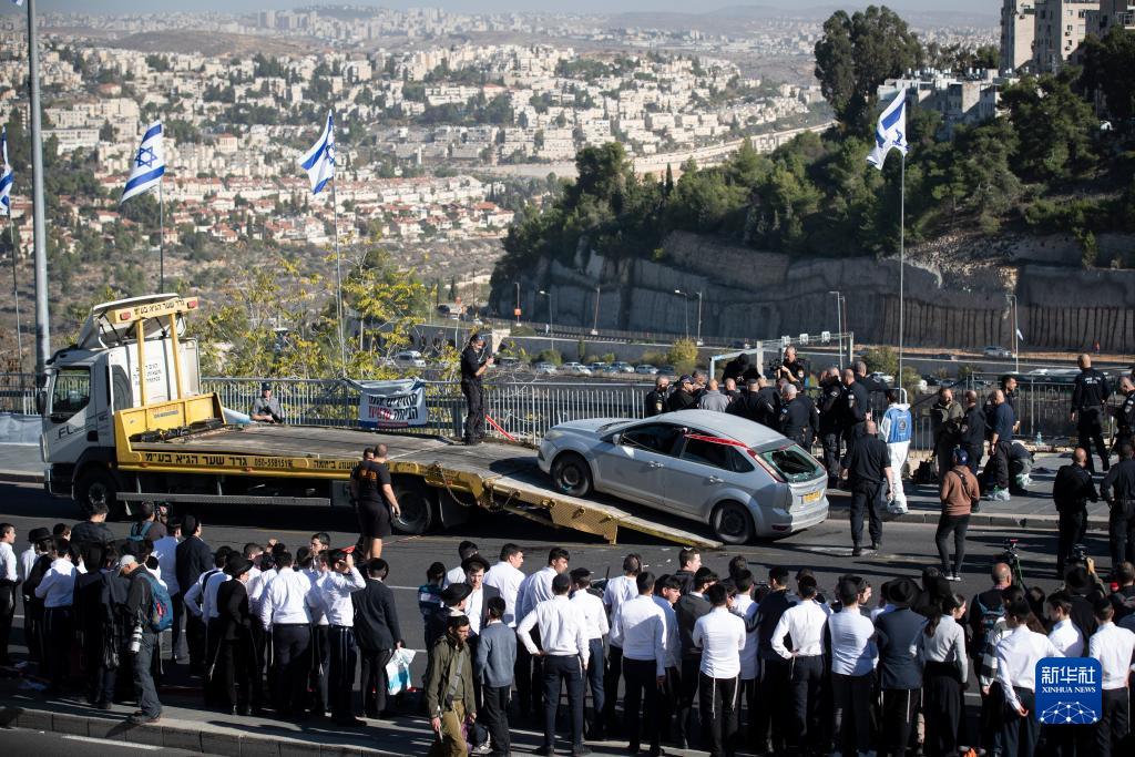 这是11月30日在耶路撒冷魏茨曼大街一公交车站拍摄的袭击者驾驶的车辆。