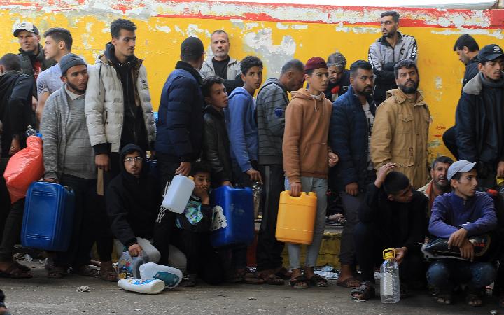 11月28日,在加沙地带南部城市汗尤尼斯一加油站,人们排队等待补充燃料。 新华社发(亚西尔·库迪摄)