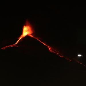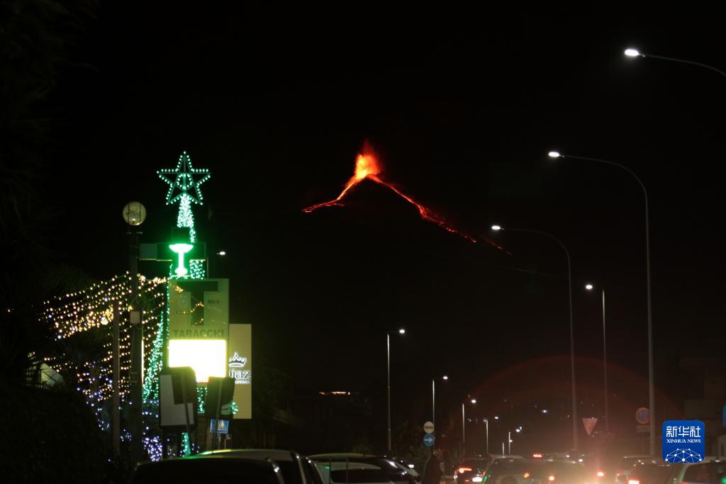 这是12月1日在意大利西西里岛卡塔尼亚拍摄的喷发中的埃特纳火山。
