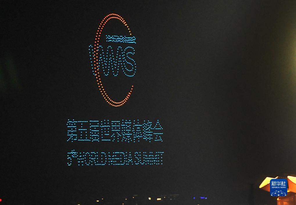 第五届世界媒体峰会|广州南沙举行无人机表演