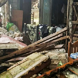 这是12月3日在菲律宾南苏里高省拍摄的在地震中受损的建筑。