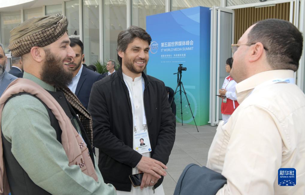 12月3日,参会代表在第五届世界媒体峰会开幕式现场交流。