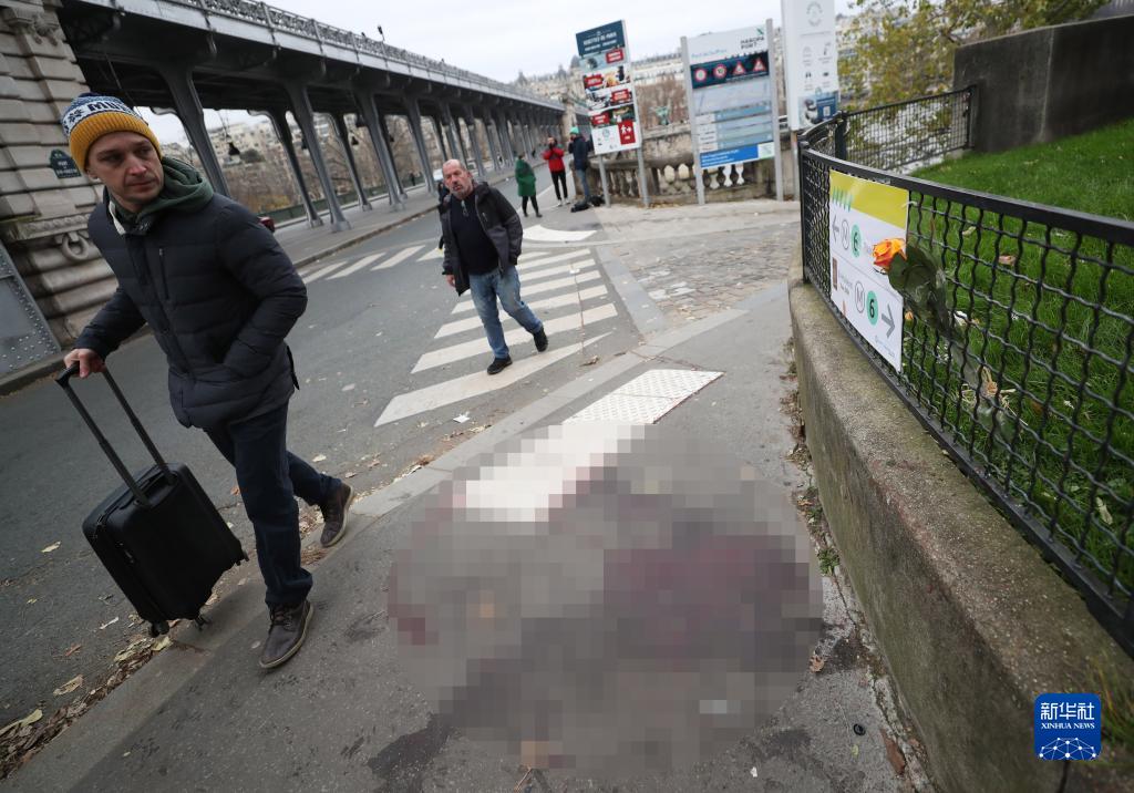 12月3日,行人经过位于法国巴黎埃菲尔铁塔附近比尔哈凯姆桥上的袭击事件现场。