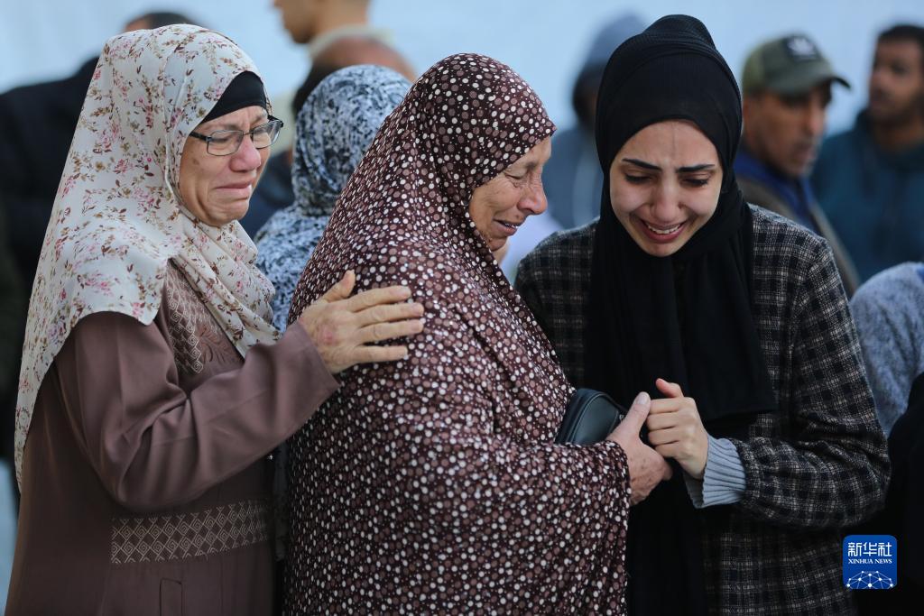 12月3日,在加沙地带代尔拜拉赫的一家医院,巴勒斯坦人哀悼在以军袭击中遇难的亲属。