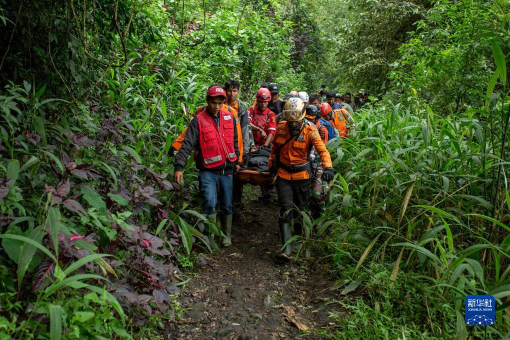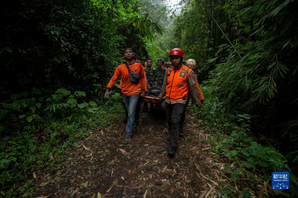 12月4日,在印度尼西亚西苏门答腊省的马拉皮火山附近,搜救人员转移伤者。 新华社发(安德里·马迪安斯亚摄)