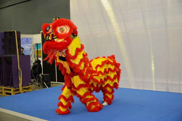 12月3日,萨格勒布大学孔子学院在慈善义卖活动开幕式上进行舞狮表演。记者 李学军 摄