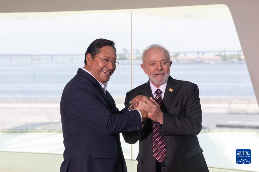 12月7日,在巴西里约热内卢,巴西总统卢拉(右)与玻利维亚总统阿尔塞握手。新华社记者 王天聪 摄