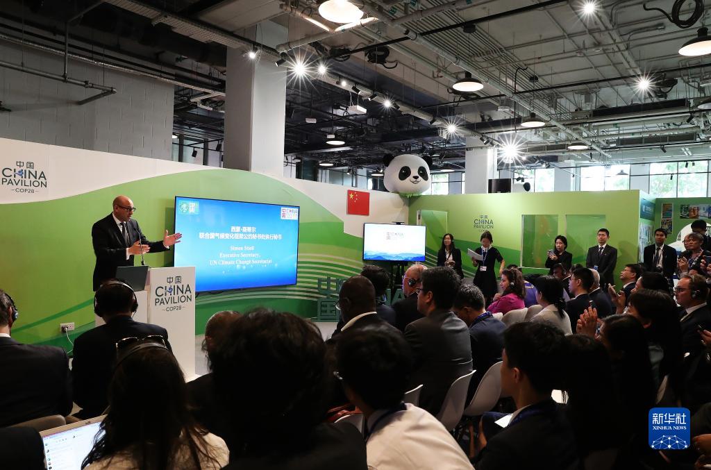 12月8日,在阿联酋迪拜的COP28中国角,《联合国气候变化框架公约》秘书处执行秘书西蒙·斯蒂尔在“应对气候变化南南合作高级别论坛”上发言。新华社记者 王东震 摄