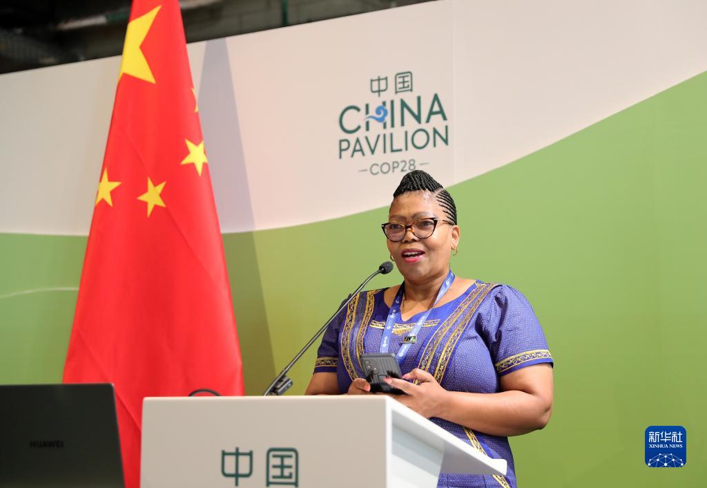 12月8日,在阿联酋迪拜的COP28中国角,博茨瓦纳环境、自然资源保护与旅游部长菲尔达·凯伦在“应对气候变化南南合作高级别论坛”上发言。新华社记者 王东震 摄