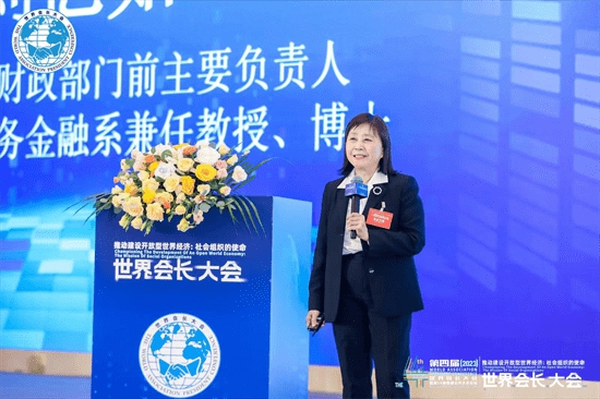 台湾地区财政部门前主要负责人,台湾大学财务金融系兼任教授刘忆如博士以“2024 全球经济重点观察”为题做主旨演讲。随后,大会还发布了第四届(2023)世界会长大会首日封,浙江省邮票局局长詹旭波到会宣读发布文件。