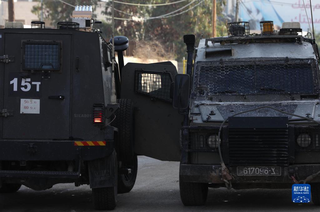 这是12月12日在约旦河西岸城市杰宁拍摄的以色列军车。