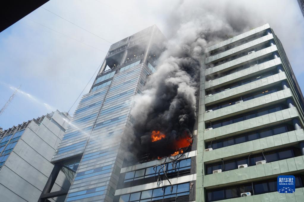 这是12月12日在阿根廷首都布宜诺斯艾利斯拍摄的办公楼火灾现场。新华社/美洲通讯社