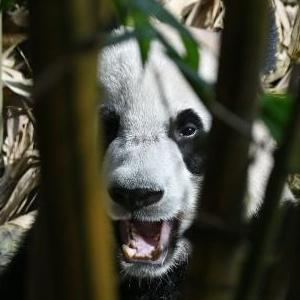 这是12月13日在新加坡河川生态园拍摄的大熊猫“叻叻”。
