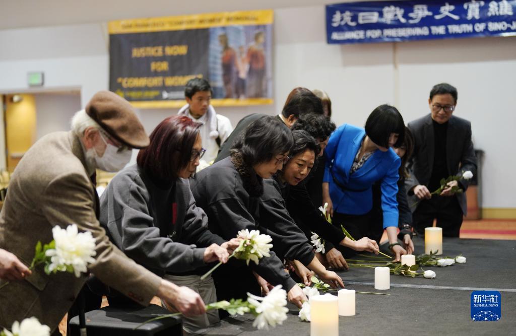 12月10日,人们在美国旧金山举行的“南京祭”活动上献花。