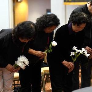 12月10日,人们在美国旧金山举行的“南京祭”活动上献花。