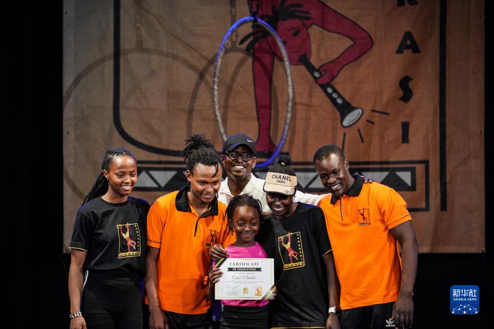 12月9日,在位于肯尼亚首都内罗毕的内罗毕杂技艺术剧院内,马蒂亚斯向一名完成一学期杂技学习的儿童颁发证书。