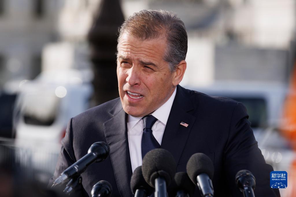 12月13日,在美国华盛顿,美国总统拜登的儿子亨特·拜登在国会前举行记者会。
