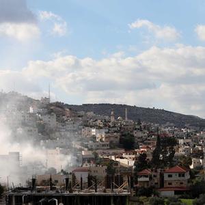 这是12月14日在约旦河西岸城市杰宁拍摄的军事行动中产生的浓烟。