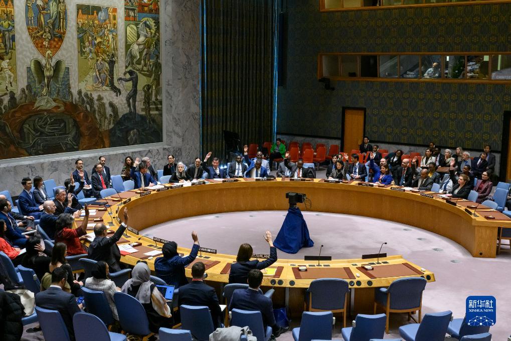 这是12月14日在位于纽约的联合国总部拍摄的联合国安理会会议现场。