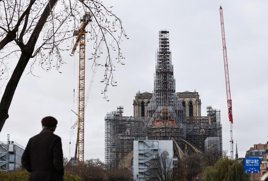 这是12月8日在法国巴黎拍摄的修复中的巴黎圣母院。