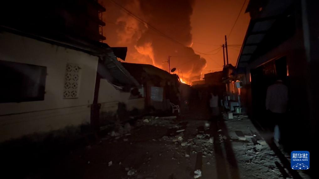 这是12月18日在几内亚首都科纳克里拍摄的燃油仓库火灾现场。