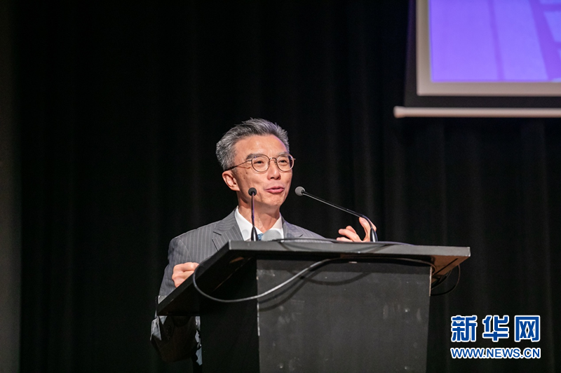 中国驻欧盟使团公使彭刚在活动上做主旨演讲。林丹珩 摄