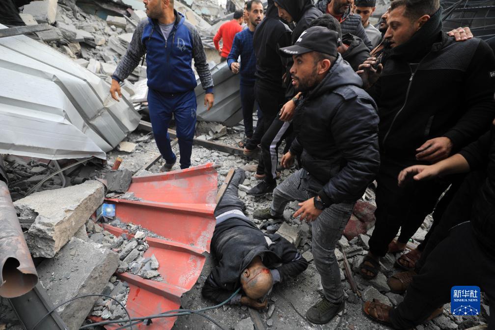 12月20日,在加沙地带南部城市拉法,人们在以军空袭后开展救援。