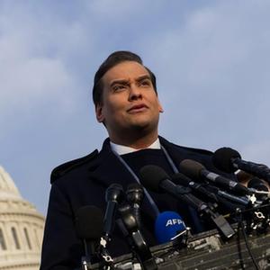 11月30日,乔治·桑托斯在美国华盛顿国会外举行的新闻发布会上对媒体讲话。新华社发(亚伦摄)