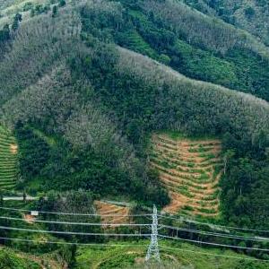 这是12月19日在泰国那空是贪玛叻府拍摄的输电线路(无人机照片)。