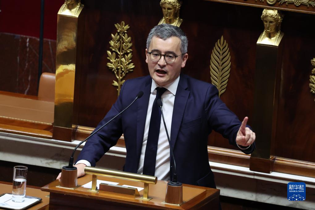 12月19日,在法国巴黎国民议会关于新移民法投票现场,法国内政部长达尔马宁在投票前发言。