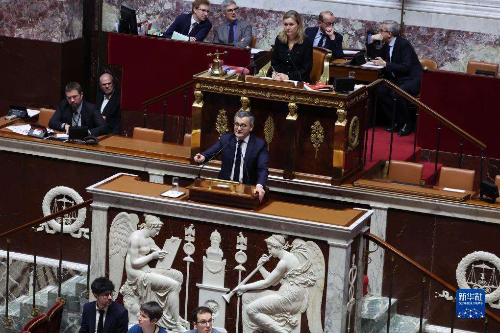 12月19日,在法国巴黎国民议会关于新移民法投票现场,法国内政部长达尔马宁(前)在投票前发言。