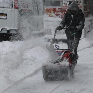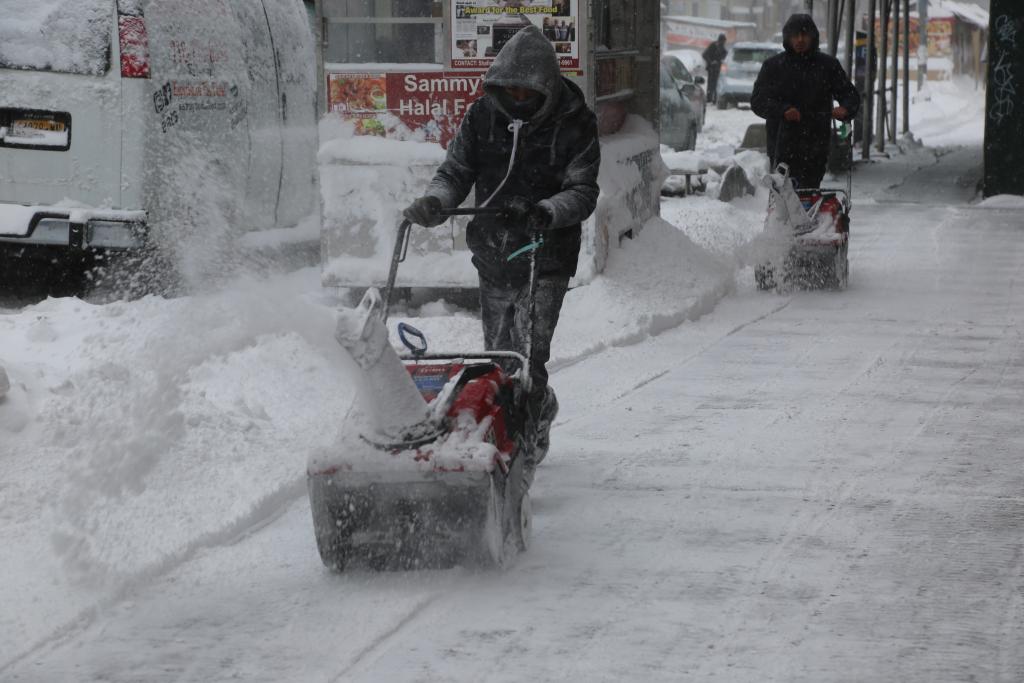 2022年1月29日,居民在美国纽约清扫路上积雪。冬季风暴给纽约市及周边地区带来大雪和强风。新华社记者刘亚南摄