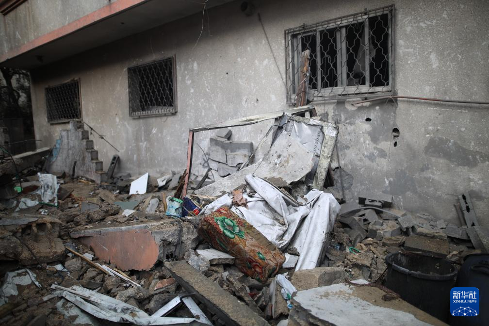 这是12月25日在加沙地带中部迈加齐难民营拍摄的以军空袭后的受损情况。