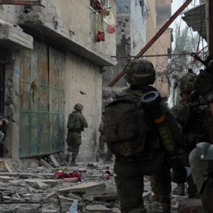 这张以色列国防军12月25日发布的照片显示,以军地面部队在加沙地带南部汗尤尼斯开展军事行动。