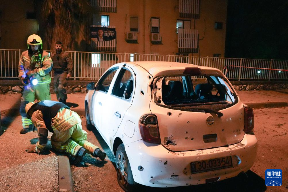 12月27日,在以色列北部谢莫纳镇,工作人员在火箭弹袭击现场开展工作。