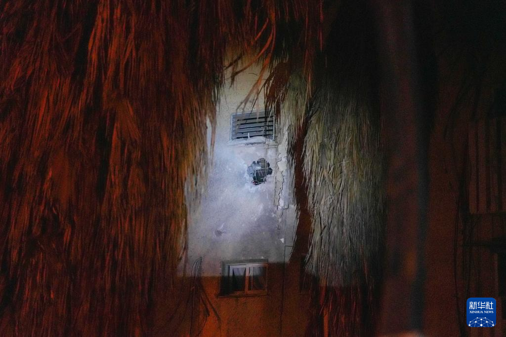 这是12月27日在以色列北部谢莫纳镇拍摄的在火箭弹袭击中受损的建筑。